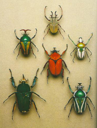 Just how many kinds of beetles there are nobody knows. Estimates range from 350,000 to over 8 million species of beetles. They represent, in themselves, an amazing 25% of all known animals including other insects, mammals, reptiles, birds, mollusks, coral, worms, sea anemones on the face of the Earth today. If success is measured by numbers, they are the most successful animals to have ever lived. The sheer number of beetles is echoed in their ecological diversity. Their habitats stretch from the arctic to the equator, from the alpine to the desert, from the subterranean to the arboreal, and from the terrestrial to the marine. Their sizes range from microscopic to that of a box turtle a range greater than that between the smallest mammal, a shrew, and the largest, a blue whale. Their variety of colors and shape is unsurpassed in the animal kingdom. The question arises, and this is the central theme of An Inordinate Fondness for Beetles, what is the source of this unparalleled biodiveristy? Why are there so many different kinds of beetles in such overwhelming numbers, living in so many places?