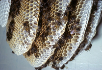 1,200 of the estimated 16-20,000 species. Many species excavate nests in the ground, others construct exposed nests on rocks or vegetation while others nest in pre-existing cavities such as hollow plant stems, beetle borings in dead wood; some specialists use snail shells. The majority of ground nesting bees use their own glandular secretions to line the cells in which the store pollen and nectar and in which their larvae develop. By contrast, surface and cavity-nesting species collect, according to species, mud, small pebbles, plant resins, a mastic of chewed leaves, or various combinations of these. Some use pieces of leaf and plant and/or animal hairs. Proponents of intelligent design would have a field day citing the structural features bees use to handle these building materials. They would also be inspired by the structures female bees use in gathering and transporting the nectar and pollen they collect from flowers. Many bee species have highly specialized relationships with a restricted range of plant species and they have even more specialized structures to manage the handling of pollen from virtually inaccessible sources. If specialization is a recurrent theme in the nesting and